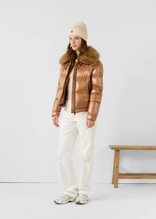 Avec son tissu brillant et ses finitions travaillées, cette doudoune revisite les classiques hivernaux avec style. Le col en fausse fourrure amovible offre une double lecture du look : plus urbain sans, plus sophistiqué avec. Parfaite pour celles qui aiment adapter leur silhouette au fil des jours froids.
