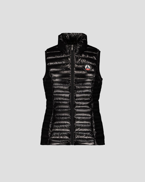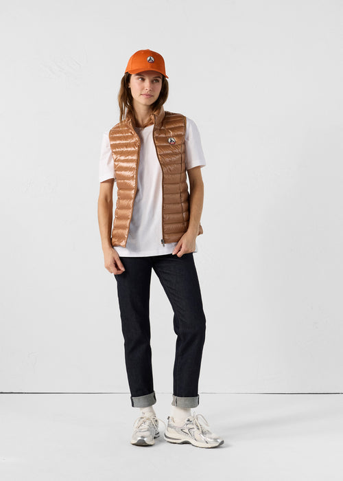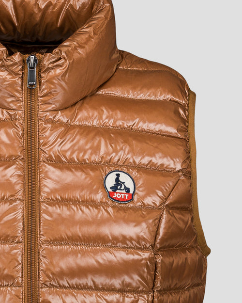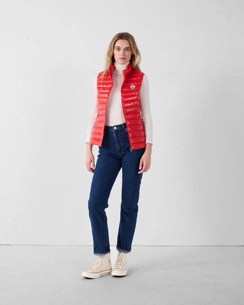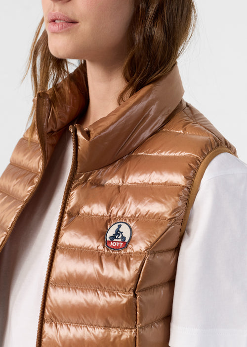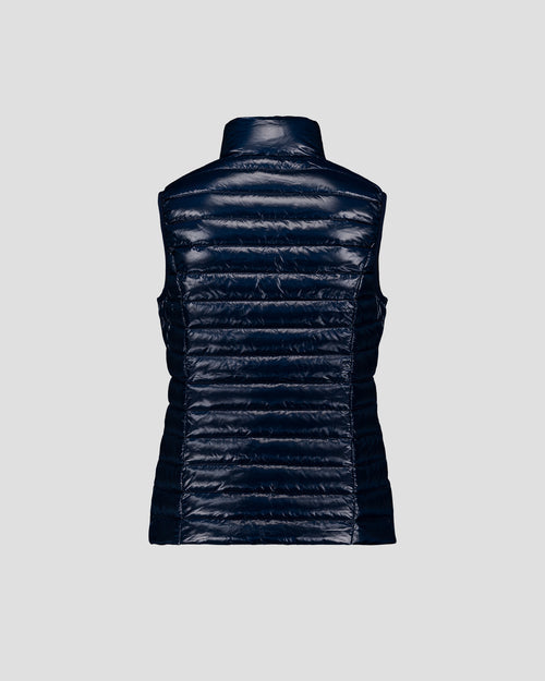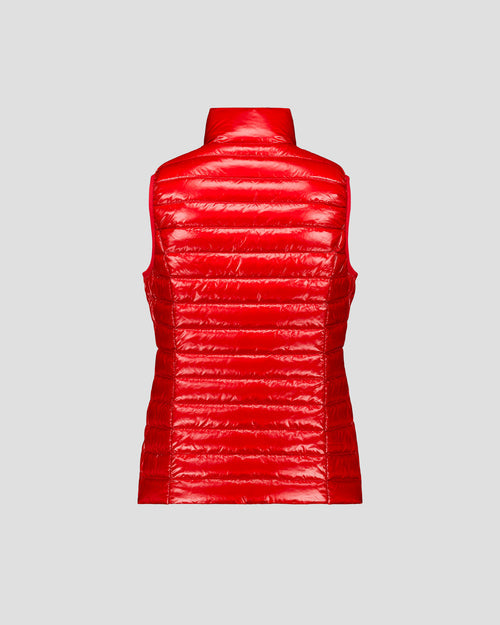 Doudoune sans manches en polyamide brillant, pour une silhouette légère et pleine d’allure. Son tissu emblématique capte la lumière avec style, tandis que les poches zippées invisibles et le passepoil contrasté à l’intérieur ajoutent une touche de finition soignée. Un essentiel à superposer pour upgrader facilement n’importe quel look.