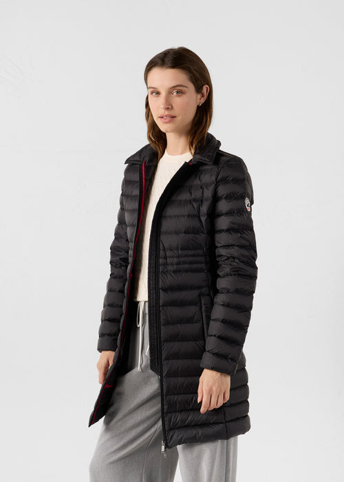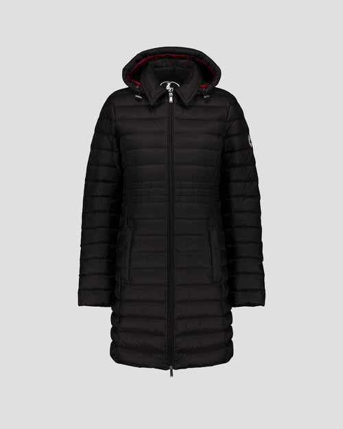 Doudoune longue en polyamide légerGarnissage en duvet 90 % / plumes 10 %Capuche amovibleNouveau col inspiré du trenchCordon de serrage ajustable à la taille pour une silhouette personnaliséePatch logo feutré sur la manche gauche